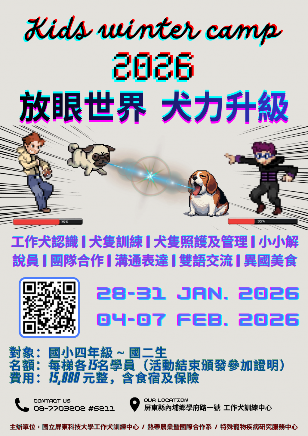 轉知 國立屏東科技大學工作犬訓練中心辦理2026冬令營「FUN眼世界 犬力升級」