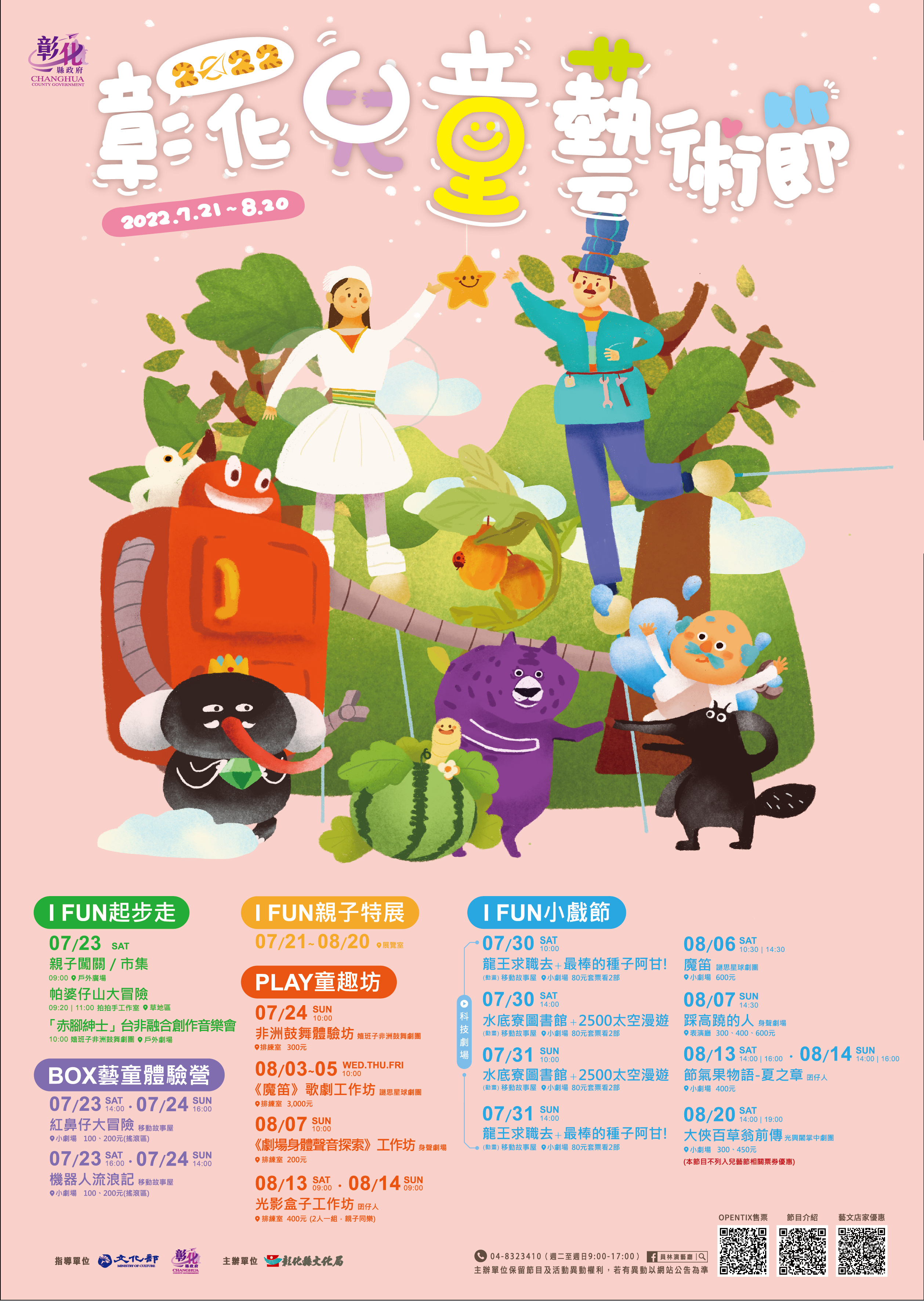 本局為推廣優質表演藝術節目,今(111)年自7月21日至8月20日於員林演藝廳規劃「2022彰化兒童藝術節」系列活動,特別邀請國內知名表演團隊帶來1場免票AR擴增實境特展、1場免費戶外活動、5場次工作坊及8檔售票演出,呈現豐富的視聽覺藝術饗宴。