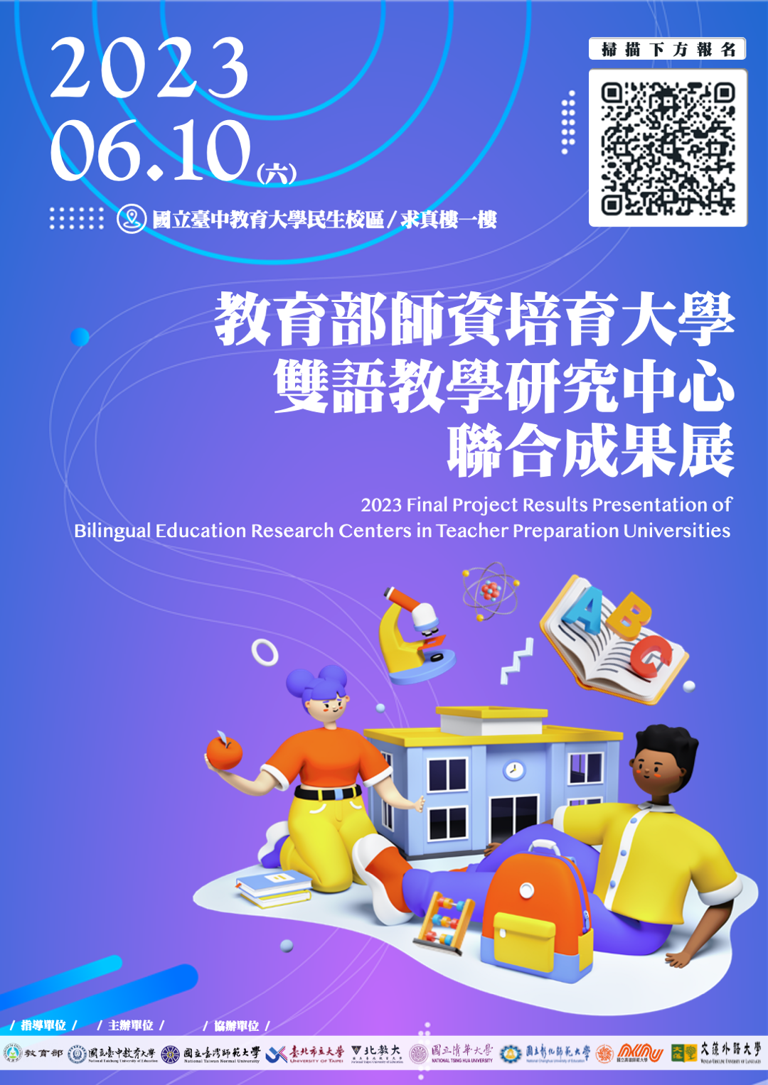 (五)協辦單位:國立臺灣師範大學雙語教學研究中心、國立臺北教育大學雙語教學研究中心、臺北市立大學雙語教學研究中心、國立清華大學雙語教學研究中心、國立彰化師範大學雙語教學研究中心、文藻外語大學雙語教學研究中心、國立高雄師範大學全英語與雙語教學推動中心