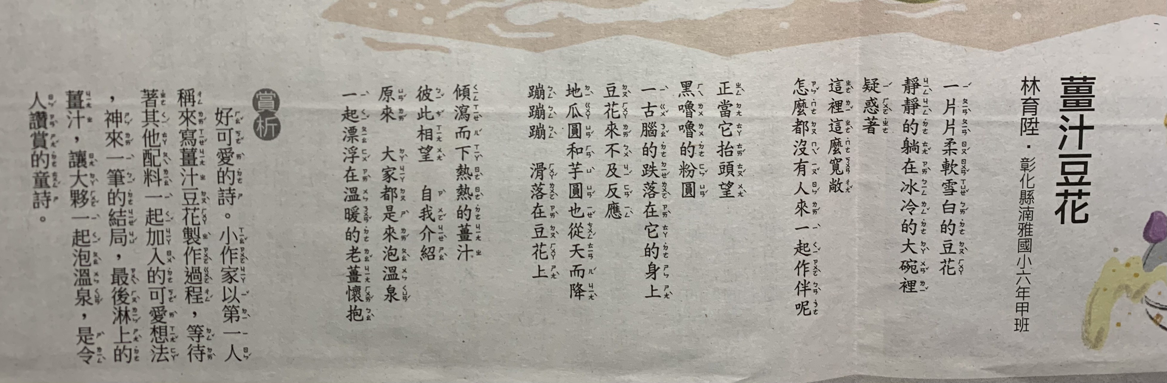 恭喜六年甲班 林育陞同學詩文作品刊登國語日報 兒童9版(113 03 16)。